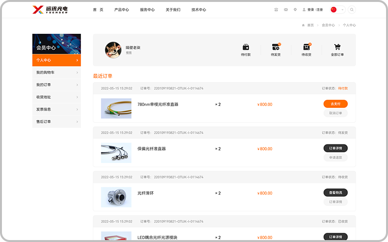 Step1.Open the homepage of Yuxun Optoelectronics' official website (www.ysenser.com) and click the "Register" button at the top right corner.